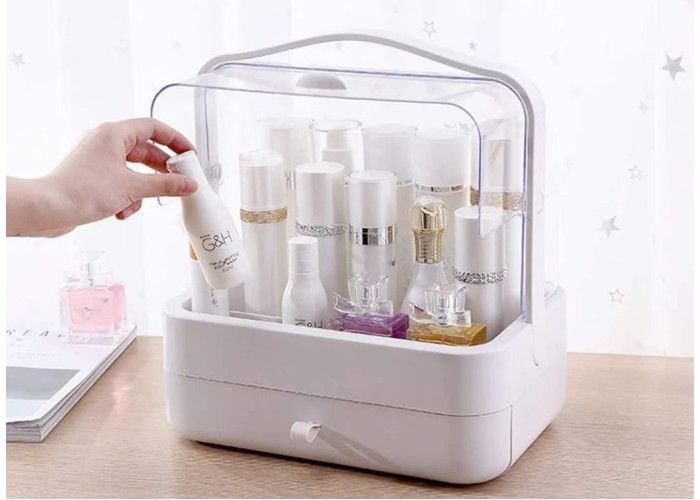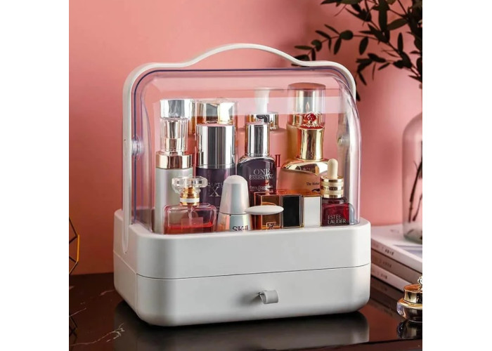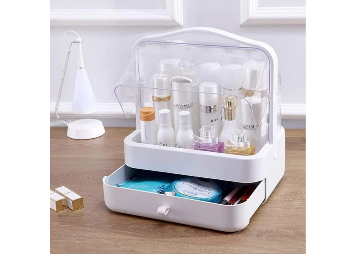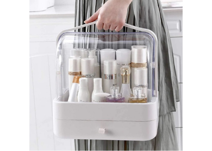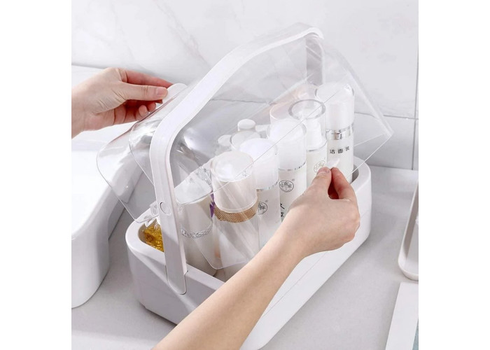 Цей гламурний прозорий пластик дає змогу легко та швидко знаходити потрібну косметику та аксесуари, а нейтральний дизайн впишеться в будь-який інтер'єр. Поместите косметику, парфумерію й аксесуари для макіяжу в цей красивий органайзер із ручкою для перенесення. Ваші секрети краси будуть акуратно складені, впорядковані та завжди під рукою. Косметичний органайзер обладнаний прозорою кришкою, яка убереже весь вміст органайзера від води, вологи або пилу. А це дійсно необхідно кожній дівчині та гарній господині.
