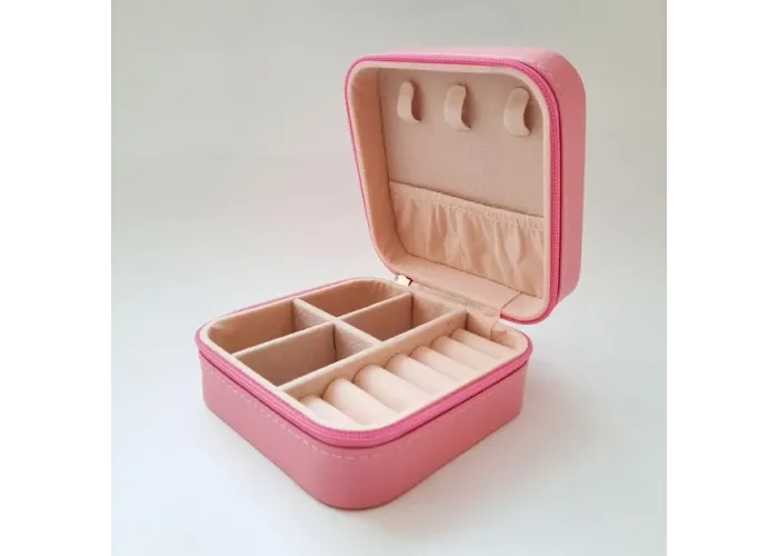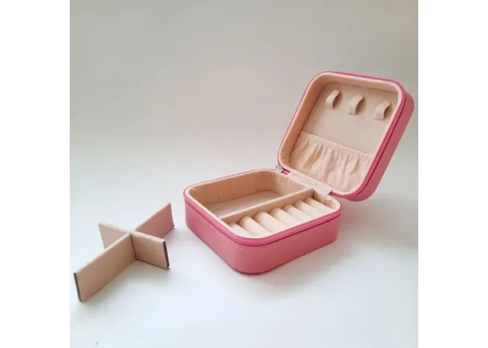 Ящик — для ювелірних прикрас. Закривається на блискавку, що дуже зручно, Ваші прикраси не загубляться під час транспортування. Чудове рішення для зберігання прикрас як удома, так і взяти із собою в подорож. Такий ящик можна назвати затишним. Компактна, невелика, але дуже містка. Знімні роздільники мають можливість регулювати внутрішній простір ящика.