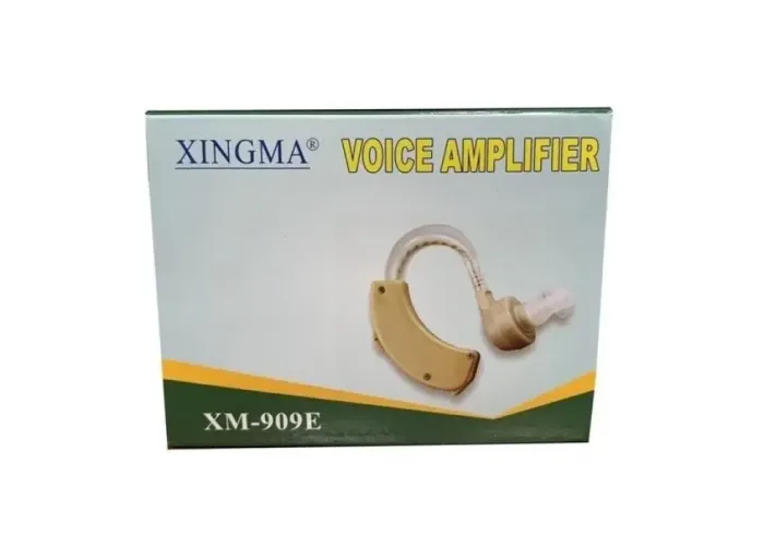 Слуховий апарат Ксингма Xingma XM-909E для поліпшення слуху важить усього 62 грами, його розміри 92 х 72 х 32 мм, інтервал робочих частот від 300 до 4500 Гц, вихід максимально насиченого звуку 129 dB.