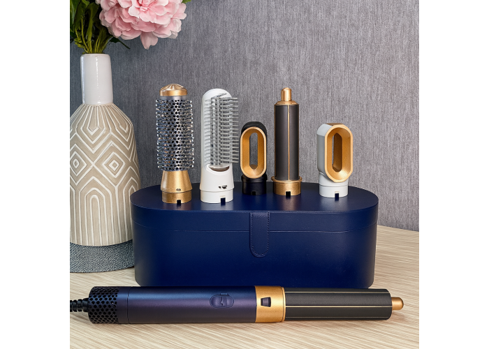 • 5 насадок у комплекті — для сушіння, випрямлення, завивання, надання об'єму та укладки.