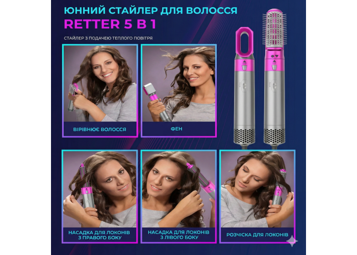 Стайлер Hot Air Styler 5в1 — це сучасний багатофункціональний прилад для створення професійних зачісок у домашніх умовах. Він поєднує сушіння та укладання в одному пристрої, дозволяючи швидко формувати об’єм, випрямляти волосся або створювати локони без шкоди для його структури.