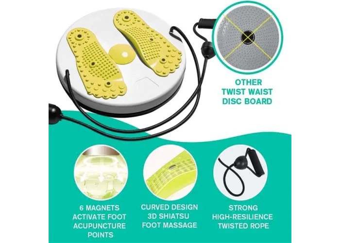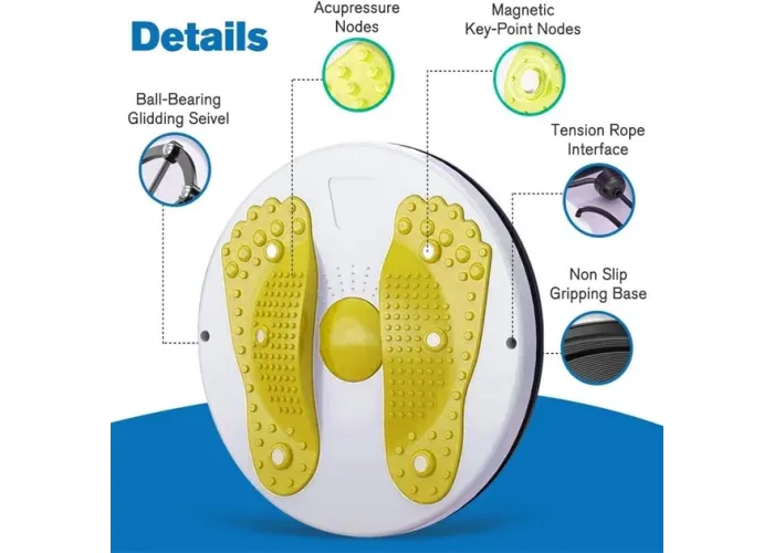 Диск здоров'я — це компактний домашній тренажер, призначений для зміцнення косих м'язів попереку, поліпшення фігури та схуднення. Диск складається з основи та рухомої верхньої частини. Між ними розташовані сталеві кульки, що забезпечують інерційність і легкість обертання для комфортного виконання вправ. Пластикова поверхня диска має округлі виступи для акупунктурного впливу на стопи ніг, що сприяє загальному оздоровленню.