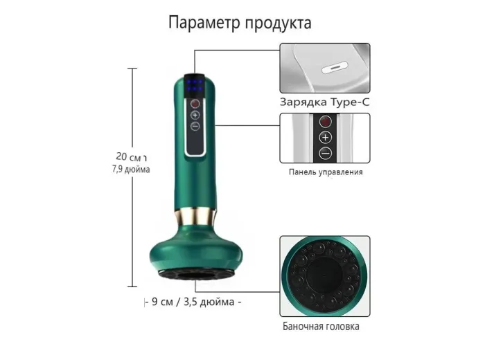 Антицелюлітний вакуумний масажер для тіла здатний прискорити процес боротьби з жировими відкладеннями й апельсиновою шкіркою. Сприяє виведенню шлаків, токсичноінфекцій і целюліту. Вакуумний масаж — один із найефективніших фізіологічних методів, використовуваних для надання форми та підтягування тіла.