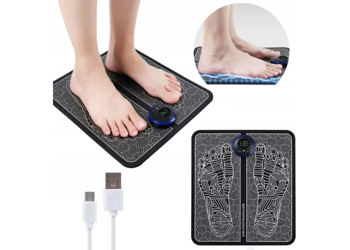 Масажний килимок EMS для ступень і ніг — цей килимок забезпечить розслаблювальний і лікувальний ефект ступень ніг. Масажер допоможе відновити кровообіг, зніме запалення й хворобливі відчуття. Килимок не рекомендується використовувати людям із серцево-судинними захворюваннями під час вагітності та дітей. Також він не призначений для використання для масажу інших частин тіла: спина, шия, стегна.