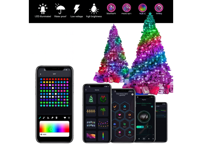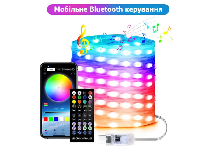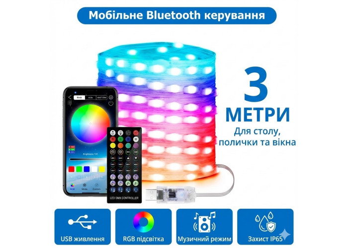 Вуличні вогні 3 м Smart Bluetooth — смарт світлодіодна LED гірлянда RGB, музична, USB, IP65