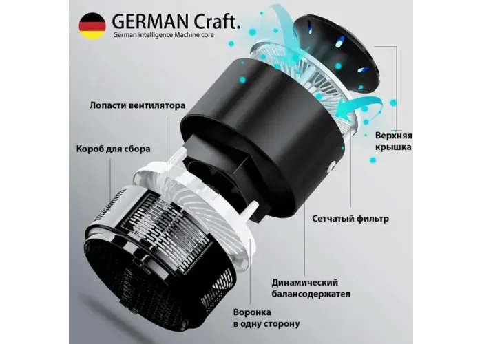 Потужний обтічний 360-градусний всмоктувальний вентилятор, комарі, що наближаються до пристрою, будуть засмоктуватися в пастку для комах і гинуть внаслідок зневоднення повітряного потоку, що дуже ефективно.