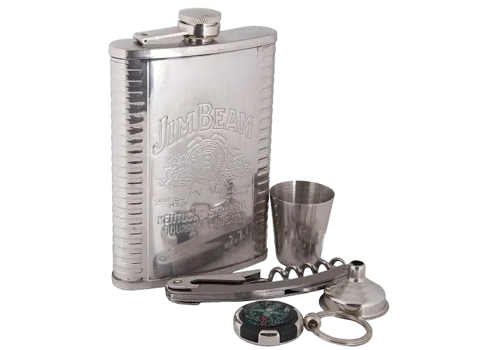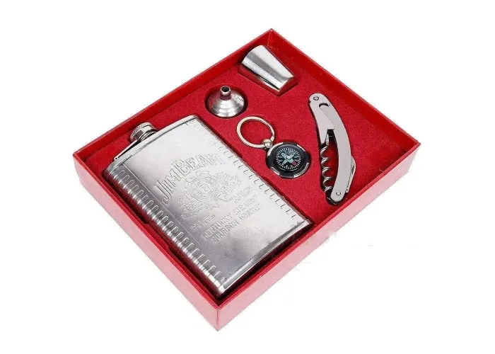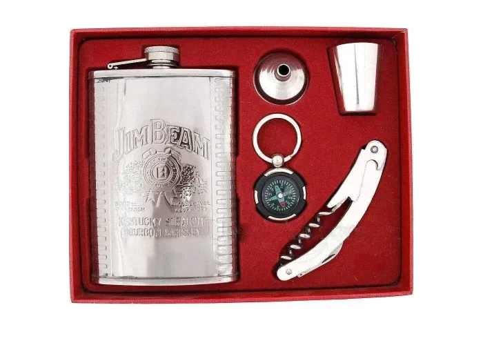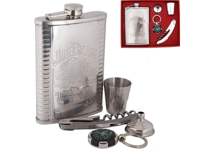 Чоловічий подарунковий набір із флягою Jim Beam 255 мл — стильний і багатофункціональний аксесуар для чоловіка. У подорожі, в гостях, на риболовлі, на пікніку завжди можете взяти із собою подарунковий набір із флягою.