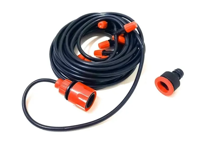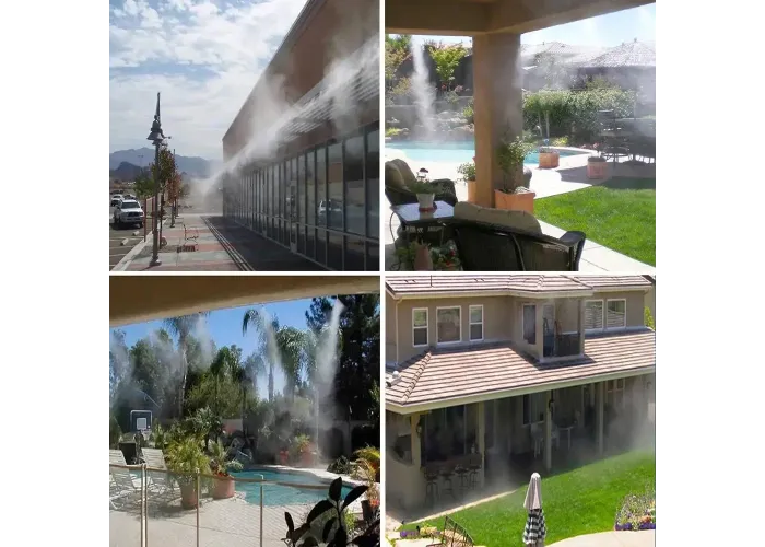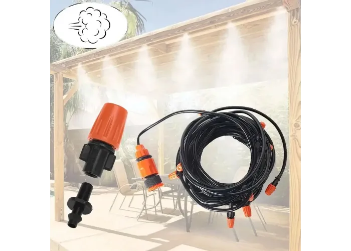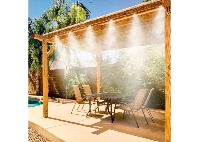 Положення допоможе виправити професійна система туманоутворення BD-182 7959, яка навіть у найспекотніший день принесе вам прохолоду. Завдяки дрібнішому рівномірному розпиленню води під тиском система туманоутворення створює ілюзію туману, що складається з дрібних капелюхів. Вона освіжить у спекотний день будь-який відкритий простір: двір приватного будинку, відкритий майданчик ресторану, альтанку.