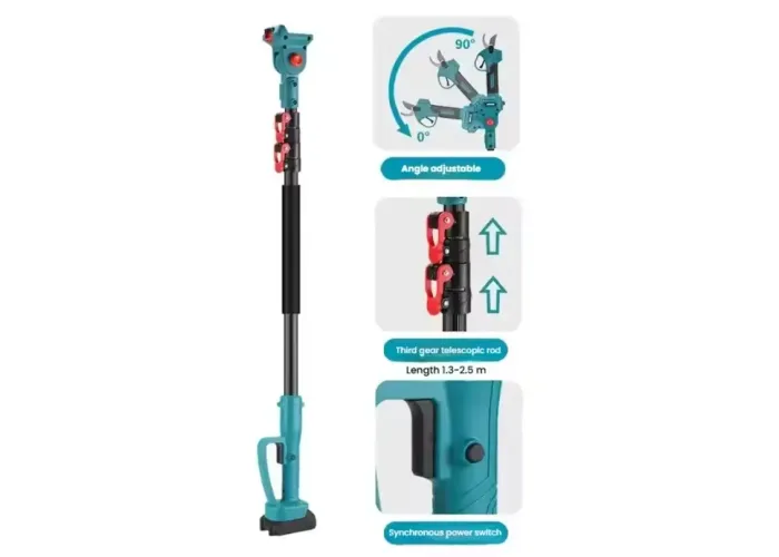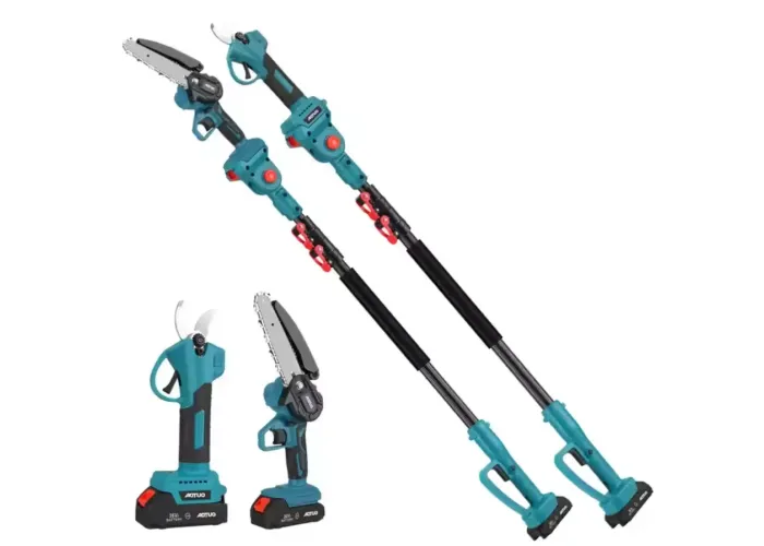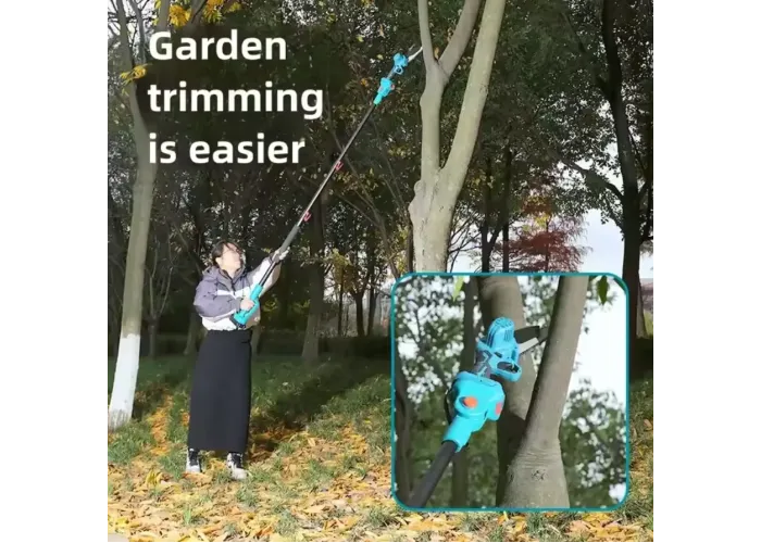 Акумуляторний секатор легко справляється з обрізанням гілок, значно пришвидшуючи сезонні роботи в саду. Міні-пила підходить для розпилювання товстіших гілок, заготовки деревини та обрізки сухостою. Телескопічний висоторіз допомагає безпечно працювати на висоті без використання драбини.