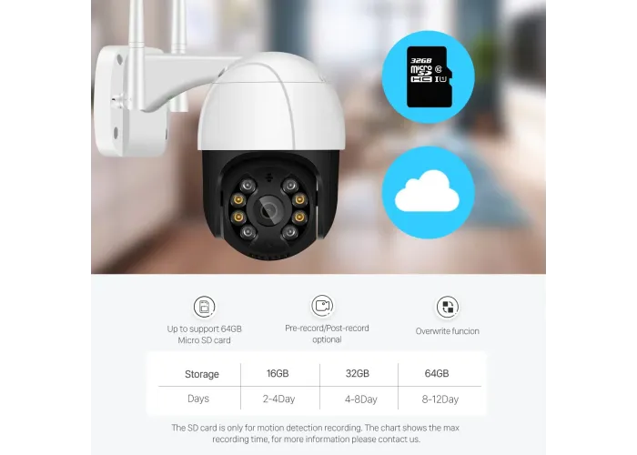 Подключение и настройка по lan и wifi за 2-5 минут. Захист IP66 — від дощу та пилу. Матеріал корпусу — товстий пластик. Роздільна здатність 2,0 МП (номера авто легко помітні з 9 поверхів), поворот по горизонталі 320° по вертикалі 90°, режим день-ніч, режим моніторингу та записування на карту до 64 МБ з руху, двобічний звук.