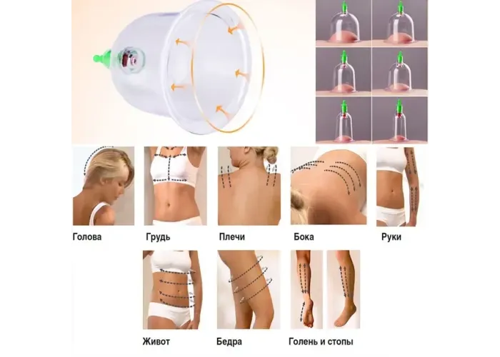 Набір з 12 вакуумних банок для масажу різних зон тіла