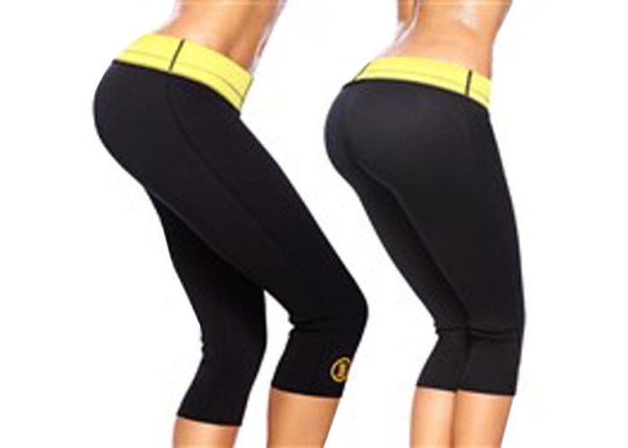 Бриджі однотонного чорного кольору, з яскраво-жовтою підкладкою та жовтою емблемою на поясі. Мають вигляд вони як звичайний одяг, навіть не скажеш, що це спеціальні бриджі для схуднення. Штани стильні та гарні, і завдяки універсальному забарвленню чудово поєднуються з будь-якими топами, футболками та спортивним взуттям.