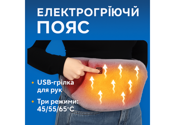 Універсальний пояс із підігрівом — це компактне та зручне рішення для локального нагрівання тіла в холодну пору року. Працює від USB, підходить для дому, офісу, прогулянок і поїздок.