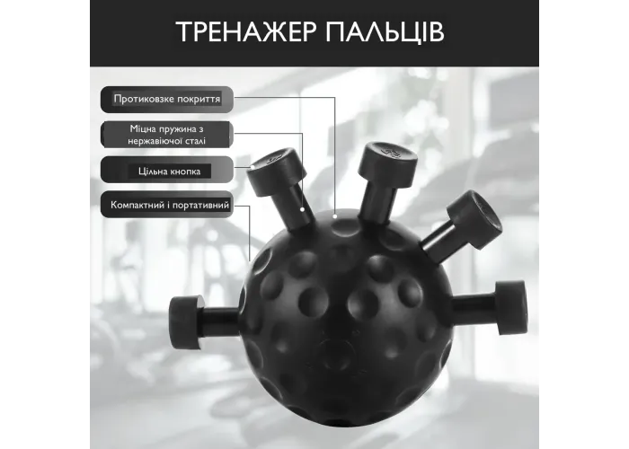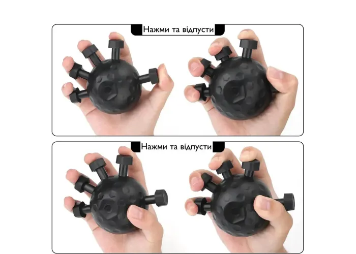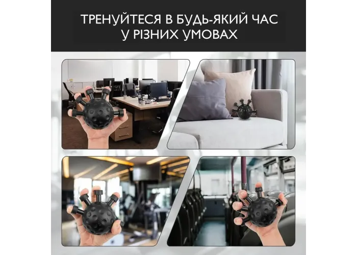 Еспандер-тренажер — ефективний і компактний пристрій для розвитку сили, витривалості та рухливості пальців, пензлів і передпліч. форма кулі (розмір 12 × 9.5 × 7 см) забезпечує природне положення руки та комфорт під час тренувань.