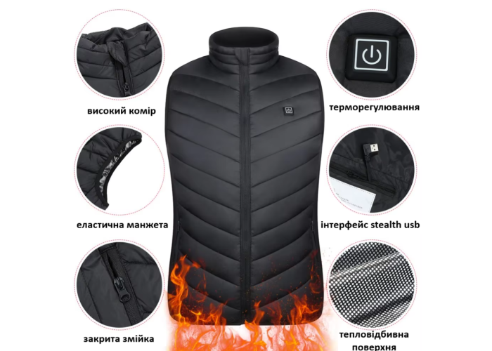 Внимание!! PowerBank необхідно вийняти, перед пранням. Жилетка легка, пошита якісно. Матеріал міцний-нейлон.
