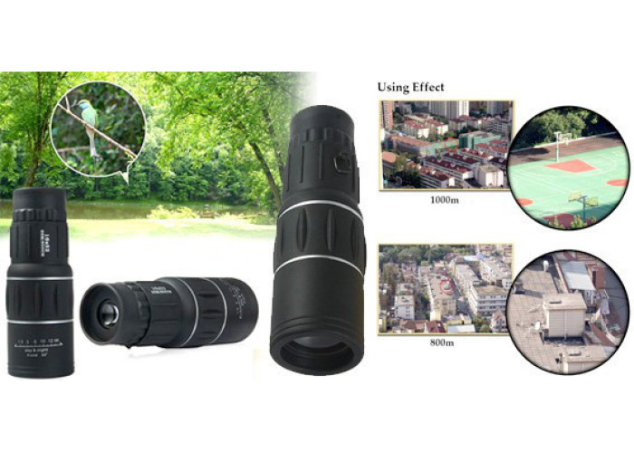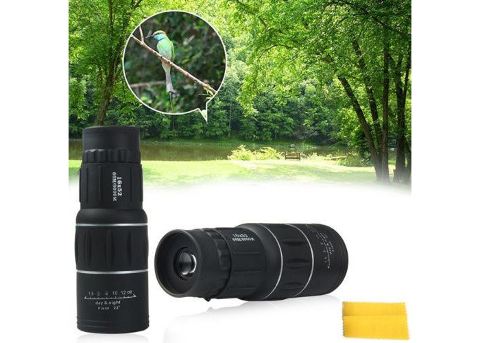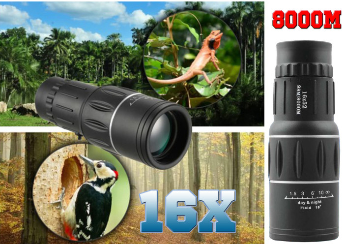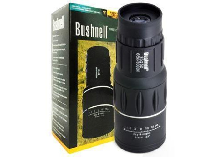 Bushnell 16X52 ідеально підходить для спостережень на природі, на риболовлі або полюванні. Монокуляр захищений від можливих ударів і примх погоди. Простий і дуже зручний у користуванні. Яскраве та гарне зображення з монокуляра виходить за допомогою лінз чудової якості. Монокуляр із захищеними від запотівання лінзами ідеальний в екстремальних умовах. Асферичний елемент в окулярі усуває спотворення зображення. Конструкція з винесеною точкою візування забезпечує гарну видимість усього поля зору, навіть тих, хто носить окуляри. Поворотно-висувні наочники полегшують підбір правильного розташування монокуляра щодо очей. Широке поле зору. Багатошарове просвітлювальне покриття лінз і великий діаметр об'єктива для оптимальної чіткості зображення. Гумове покриття для захисту від ударів і надійного зручного захоплення. Оптика зі скла Eco-glass, що не містить олива та мишачка. Надійний ремінь