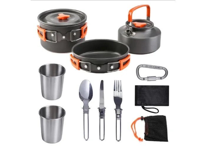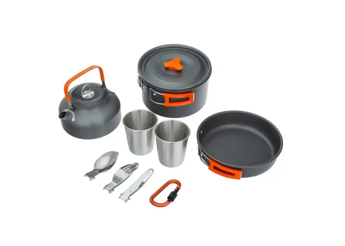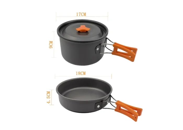 Набір виготовлений із високоякісного харчового алюмінієвого сплаву марки AD1M із застосуванням спеціального термічного покриття. Набір складається з трьох предметів посуду +столові прилади складані (ложка, вилка, ніж) і двох склянок із неіржавкої сталі по 200 мл. Набір має легку вагу та компактність! Ручки посуду складані, що дає змогу зручно зберігати набір. Набір HALIN DS-308A буде незамінним помічником на риболовлі, відпочинку або роботі.
