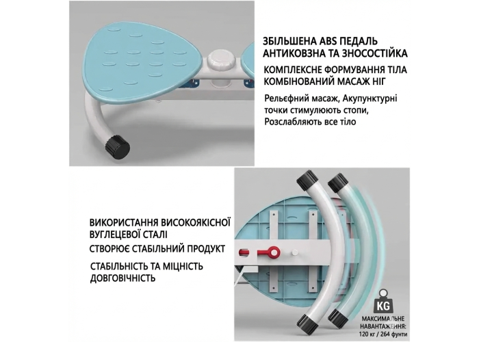 Підлоговий тренажер XY-016 призначений для виконання вправ, спрямованих на зміцнення м'язів таза, спини та рук у домашніх умовах. Конструкція тренажера дає змогу залучити кілька груп м'язів під час занять, підходить для регулярних тренувань та відновлювальних вправ. Компактні розміри забезпечують зручність використання у квартирі або будинку без потреби виділяти окреме місце для зберігання. Тренажер призначений для використання дорослими користувачами та підходить для щоденних занять.