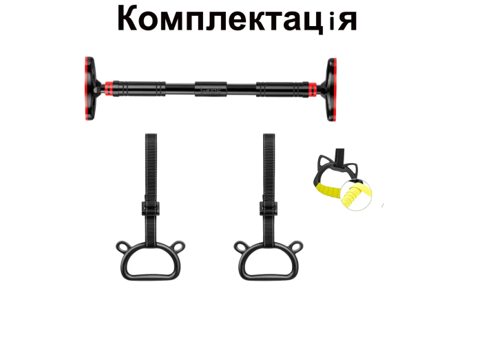 Турнік без гвинтів 60-103 см для підтягування з кільцями до 300 кг у будинок TYRNIK-1