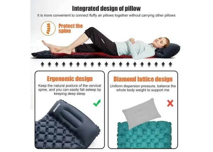 Туристичний надувний матрац із подушкою Outdoor Sleeping Каремат із подушкою і вбудованим насосом