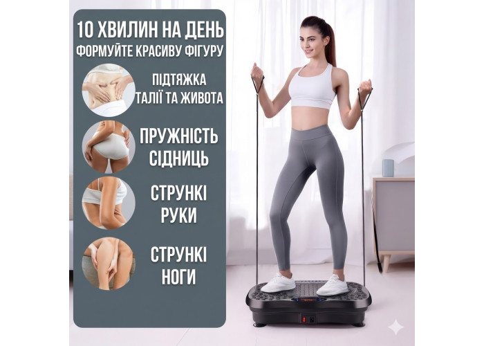 Універсальний фітнес-тренажер із вібрацією та вбудованими еспандерами — це ідеальний вибір для домашнього використання. Допомагає скинути вагу, підтягнути м'язи, поліпшити кровообіг і розслабитися після робочого дня.