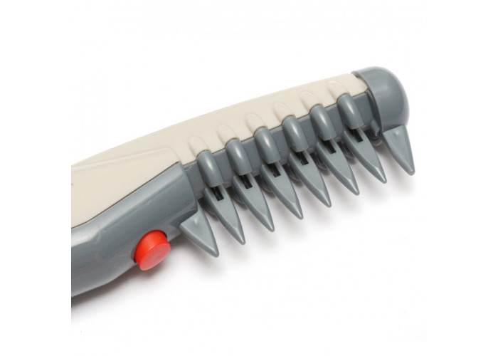 1. Кnot out electric pet grooming comb має вбудовані обертові лопаті, які вмикаються натисканням на кнопку, розташовану на ручці. Вони втоплені в самій гребінці та не випирають. Якщо гребінець застрягла на ковтуні, просто увімкніть кнопку для його видалення — лопаті зріжуть сплутану частину шерсті. Отже, під час догляду за вихованцем ви безболісно та вдвічі швидше зможете зібрати зайву шерсть.