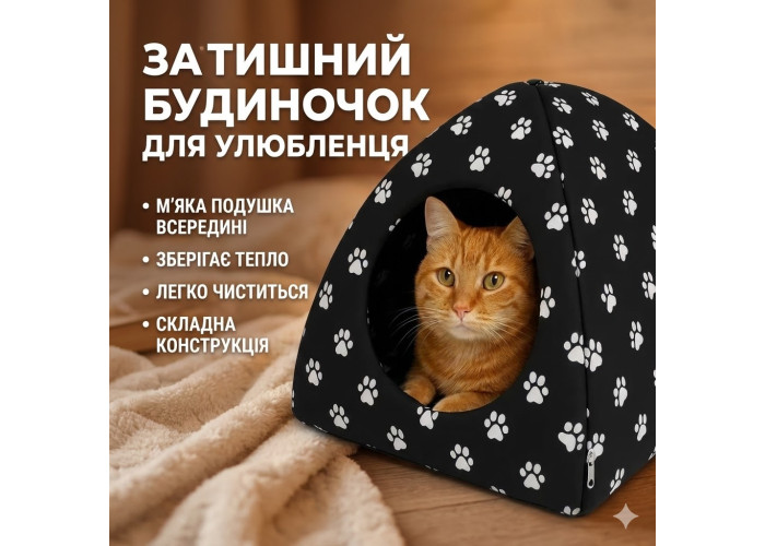 М'який будиночок призначений для собак і кішок і слугує затишним місцем для відпочинку. Будиночок виготовлений із текстильного матеріалу та обладнаний м'якою подушкою всередині, що забезпечує додатковий комфорт і тепло тварині. Закрита форма створює відчуття усамітнення й безпеки. Компактні розміри дають змогу розміщувати будиночок у будь-якому приміщенні. Виріб підходить для щоденного використання та легко підтримується в чистоті.