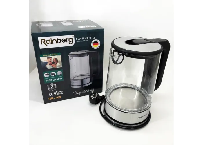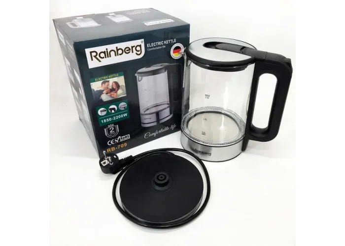 Дисковий електричний чайник Rainberg RB-709 здивує функціональністю. Чайник надійно та швидко справляється зі своїм основним завданням. Нагрівальний елемент виготовлений із неіржавкої сталі та має закритий тип.