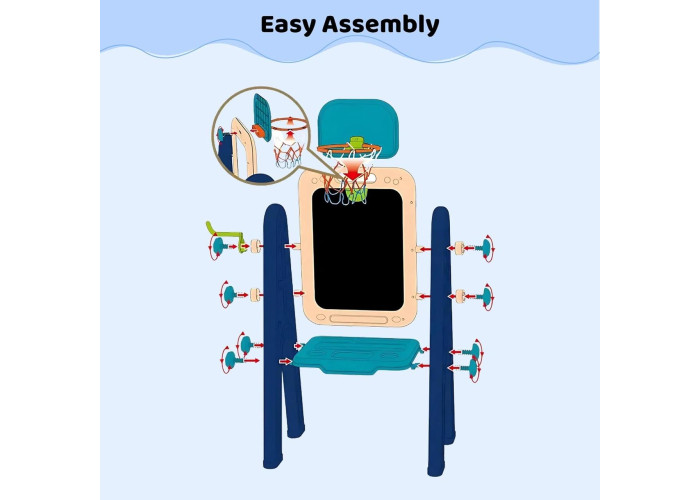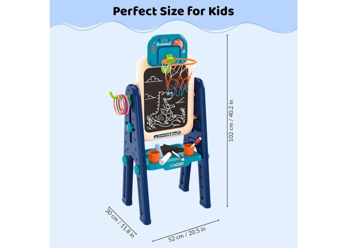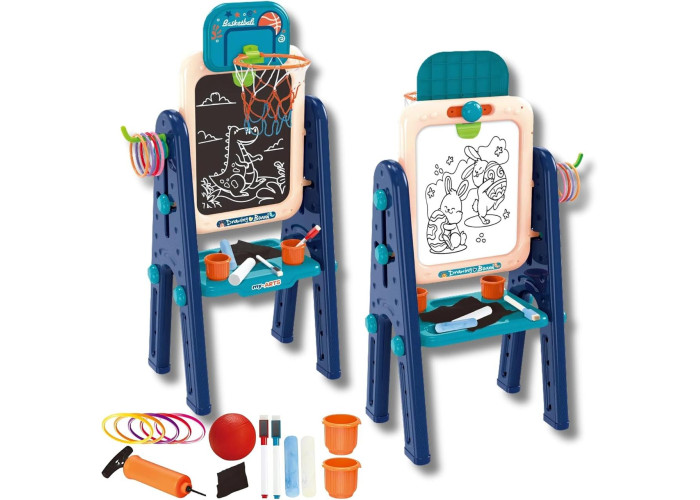 Дитячий мольберт OLEOCA 4в1 — це зручна та функціональна творча станція для дітей, яка об'єднує в собі відразу кілька зон для малювання й навчання. З одного боку — магнітна біла дошка для маркерів, з іншого — класична крейдяна поверхня. Дитина може малювати, писати, грати з магнітними літерами та цифрами, тренувати рахунок і вивчати алфавіт в ігровій формі.