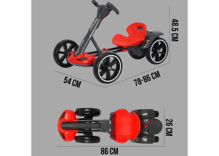 Міцна конструкція гарантує довговічність, а зручне сидіння і потовщена спинка забезпечують комфорт під час їзди. Компактний складаний корпус дає змогу легко зберігати електромобіль, а регульоване сидіння підлаштовується під зріст дитини. Ця модель — ідеальний подарунок для хлопчиків і дівчаток від 3 до 8 років!