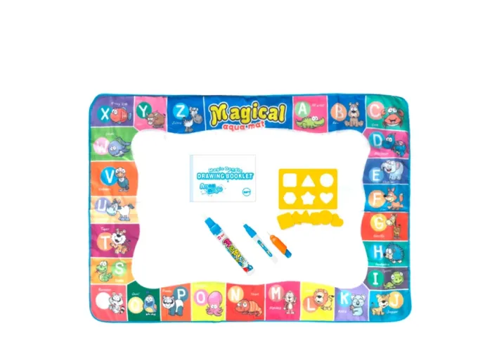 Набір для малювання водою Aqua Magic — корисний подарунок для маленького художника. Дитина малюватиме маркером, який наповнюється звичайною водою. Тому чистота будинку гарантована! Згодом картинки зникають, і можна знову братися до малювання нових.