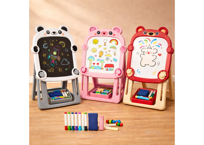 Підлоговий дитячий мольберт Fan&Fan виготовлений у формі ведмедика та призначений для малювання крейдою та маркерами.
