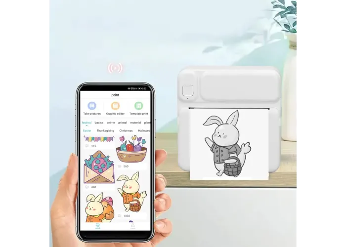 Пристрій легко під'єднується до смартфона через Bluetooth і підтримує операційні системи iOS і Android. Принтер обладнаний вбудованим літієвим акумулятором ємністю 1200 мА·год, що забезпечує тривалий час роботи без потреби частого заряджання.