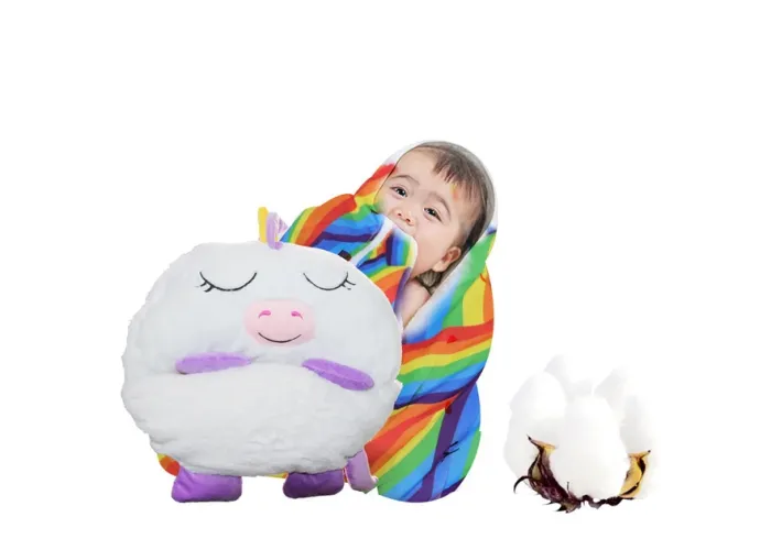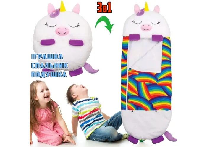 Дитячий спальний мішок-плюшева іграшка подушка Єдиноріг Baby sleeping bag Size S WHITE 3в1 теплий, комфортний, на блискавці 120 см Білий