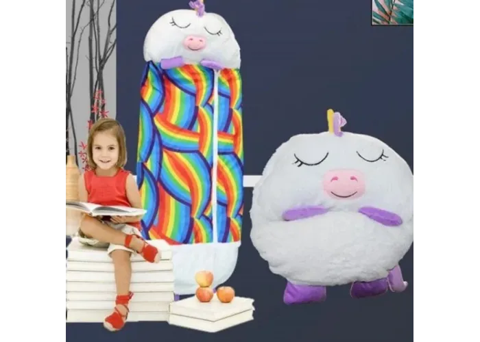 Вашій дитині сподобається цей спальний мішок. У повсякденному житті її можна скласти та використовувати як подушку з кумедною доброзичливою мордочкою.