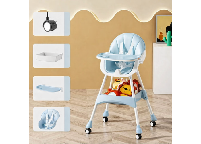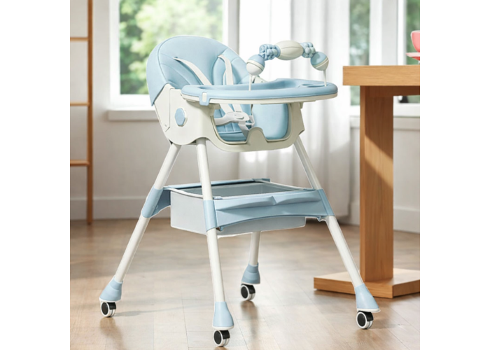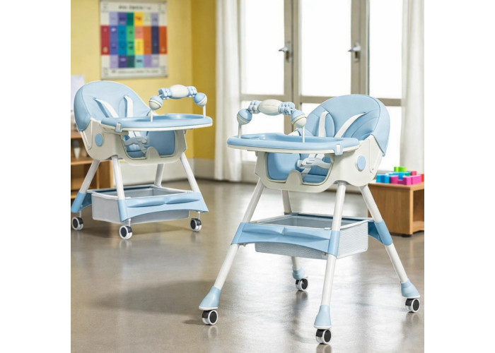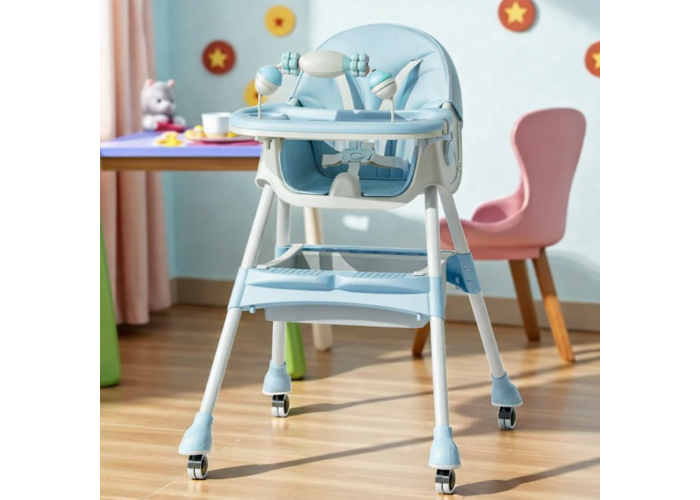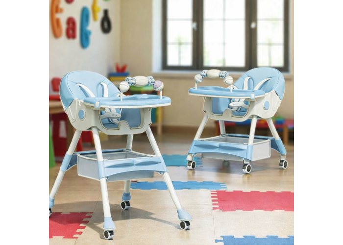 Дитячий стільчик-трансформер F005 у блакитному кольорі — універсальне рішення для годування, ігор і відпочинку малюка в домашніх умовах. Спокійний і нейтральний відтінок чудово підійде як для хлопчиків, так і для універсального інтер'єру дитячої кімнати.