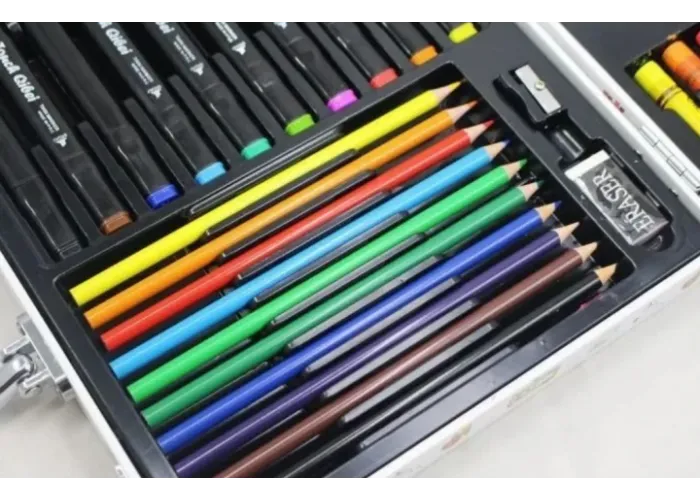 Набір справжнього художника — все, що потрібно для створення малюнків в одній стильній валізці. До набору входить велика кількість предметів — олівці, фломастери, крейда й акварель, а також багато іншого. Подаруйте дитині справжнє свято! Перед вами чудова можливість дати дитині можливість зобразити художні таланти. У валізці є все для витонченого мистецтва, набір легко можна взяти із собою в гості, школу, дитячий садок.