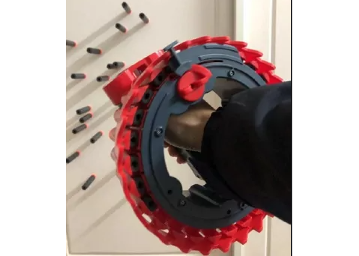 Бластер кулемет представлений у формі ручки з патронним барабаном. На колодці розміщено 2 кнопки керування: ВМИК І ВИМК для запуску стрільби, тому користуватися зброєю дуже просто. Для початку необхідно вставити до упору (!) 28 патронів у комірки барабана, увімкнути бластер, зняти запобіжник, прицілитися та натиснути кнопку пуску!