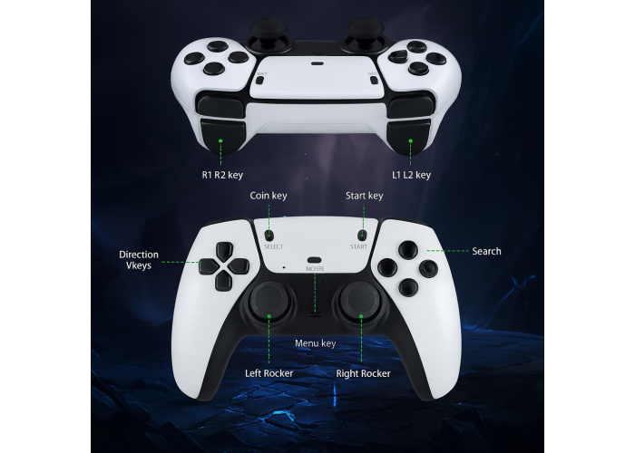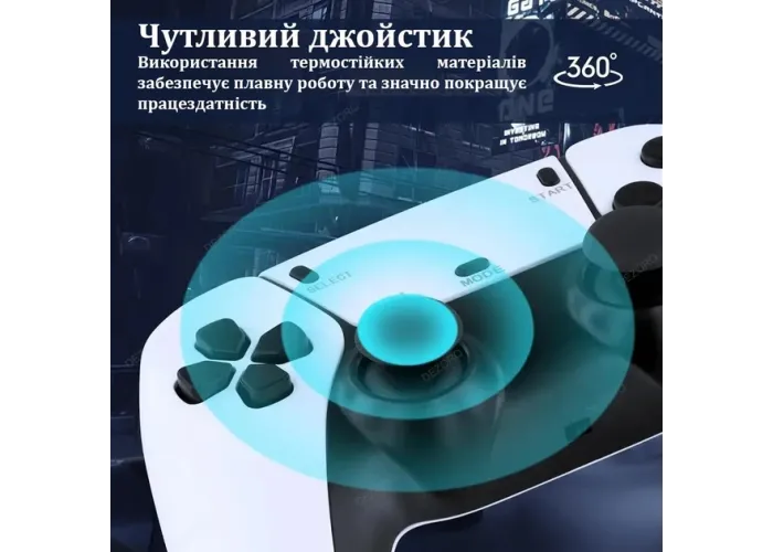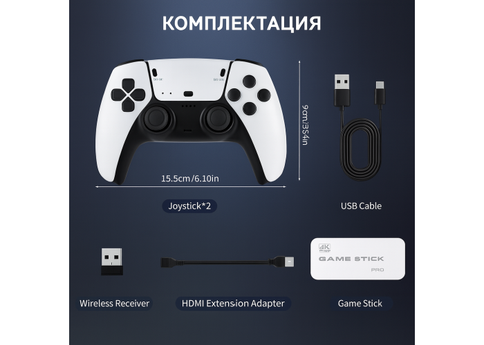 Два бездротові контролери мають частоту 2,4 ГГц, мають високу чутливість і антиковзний дизайн. Консоль підтримує відеовихід 4K Ultra HD TV (1080/720), а також телевізори, монітори та проєктори з HDMI-входом.