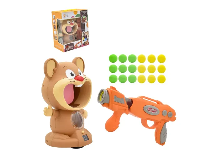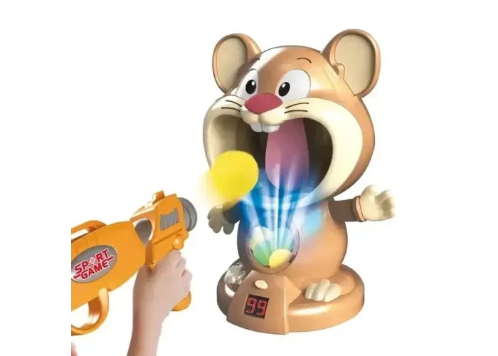 Інтерактивна гра «Позадушний тир Hamster with gunner» — це захопливий ігровий набір, призначений для дітей від 3 років. Комплект містить кумедний «Хом'яка»-мішень з аккосто-оптичною системою, яка фіксує потрапляння, а також пістолет-бластер із безпечними кулями-кульками.