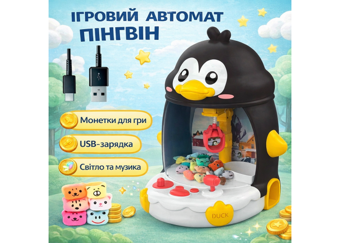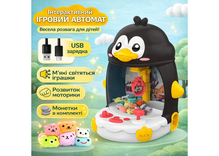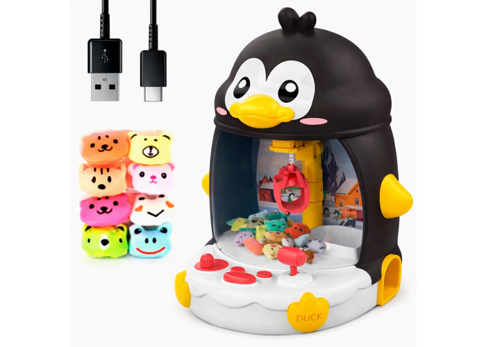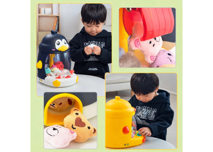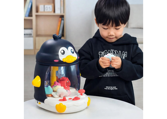 Інтерактивна іграшка у формі пінгвіна пропонує дітям захопливе та розвивальне заняття. Вона функціонує як мініманіпулятор: за допомогою кнопок керування дитина може переміщати лапку-захоплення для вилучення іграшок із прозорого простору. Цей процес сприяє розвитку дрібної моторики, уважності та координації рухів.