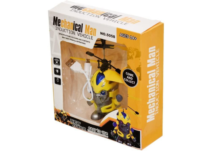 Увімкніть маленького робота і тримайте іграшку в руці, функція польоту активується автоматично, ваша рука керуватиме іграшкою. Датчика напрямку немає, тому з цією іграшкою не рекомендується грати на відкритому повітрі, наприклад, у парках, зоопарках, на вулицях тощо. Грайте в приміщенні, позаяк іграшка не має датчика напрямку та її можна втратити. Яскраве світлодіодне освітлення, яке можна побачити й під час нічної роботи. Виріб невеликого розміру, його зручно носити із собою та зберігати.