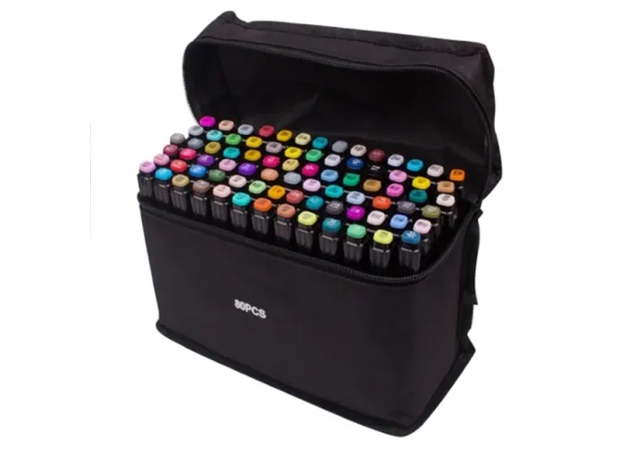 Маркери двосторонні. У кожного маркера з одного боку широке долото завширшки 6 мм, яке дає гарний рівний штрих, з іншого — тонкий наконечник, завширшки 1 мм, для деталей і тонкого промальовування.