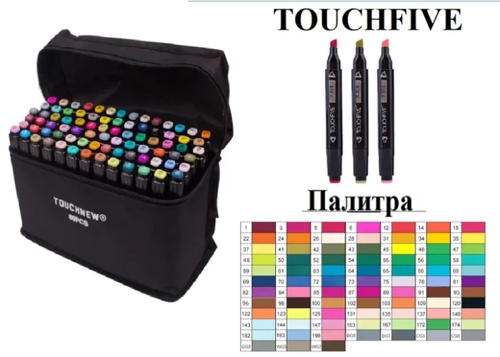Скетч — маркери TouchFIVE, двосторонні, з великим запасом чорнила, на спиртовій основі.
