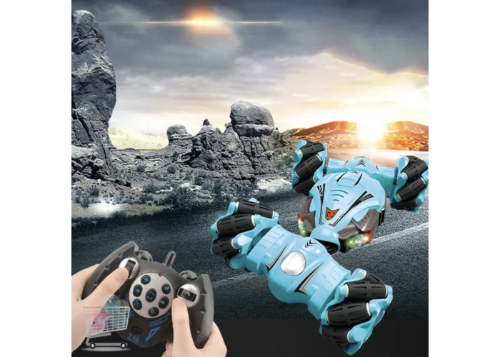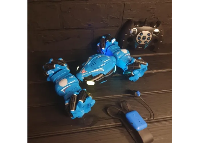 Машинка-перевертень всюдихід Stunt Car YL-51 з керуванням від руки. Такого Ви ще не бачили. Мало того, що вона виконує розвороти на 360 градусів, вміє підіймати кабіну для кращої прохідності по бездоріжжю, їздить боком, їздить вгору ногами, дуже швидка та красива, так само вона керується від браслета, який кріпиться на руку.