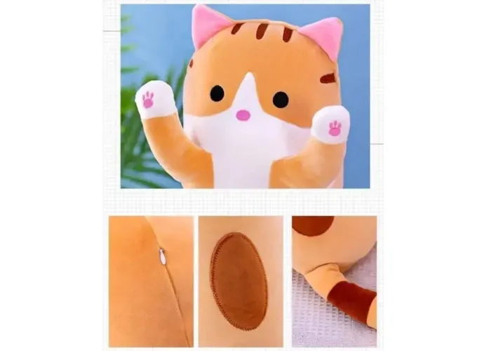 Завдяки своїм розмірам він може стати прекрасною заміною подушки, м'який і приємний на дотик Кіт, подарує Вам море солодких снів.