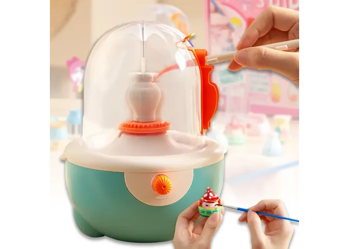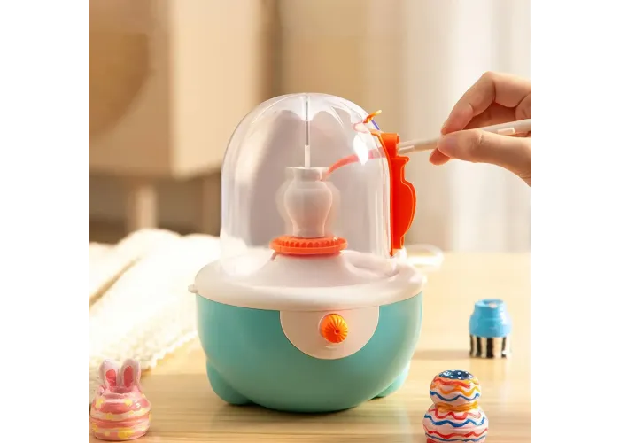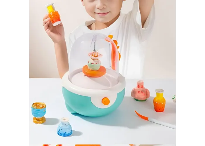 Завдяки безступеневе регулювання швидкості та потужного двигуна з високим крутним моментом, дитина зможе легко контролювати процес формування, створюючи різні форми та текстури. Знімний піддон захищає поверхню від бризок і полегшує прибирання після роботи.