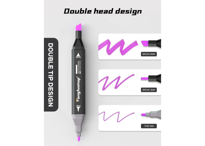 Маркери двосторонні, на одній стороні перо тонші, тоді як на інший наконечник товстий і підходить для штрихування великих малюнків.