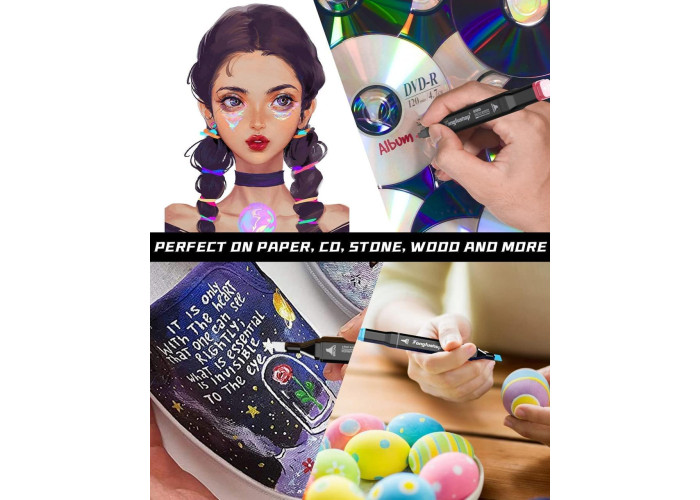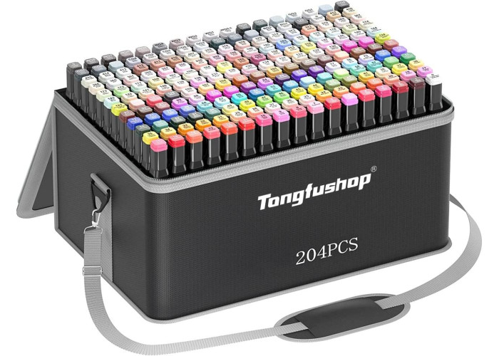 Спиртові маркери створені для тих, хто захоплений малюванням і каліграфією, любить створювати комікси та барвисті ескізи. Скетч-маркери дають змогу максимально точно передати колірну гаму малюнка. У наборі 204 маркерів різних кольорів, кожен маркер має два наконечники різної форми для різного типу робіт: загострений наконечник для тонких ліній і контурів і плоский наконечник зі скошеним краєм для широких штрихів.