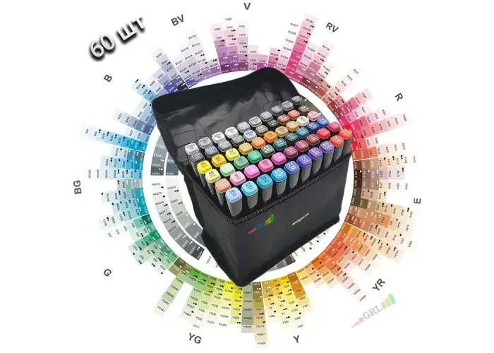 Є одними з найпопулярніших спиртових, двобічних маркерів. У наборі з 60 маркерів дизайнер знайде натхнення для реалізації свого творчого потенціалу. Маркер має 2 пера (перо "долото" та перо маркер).